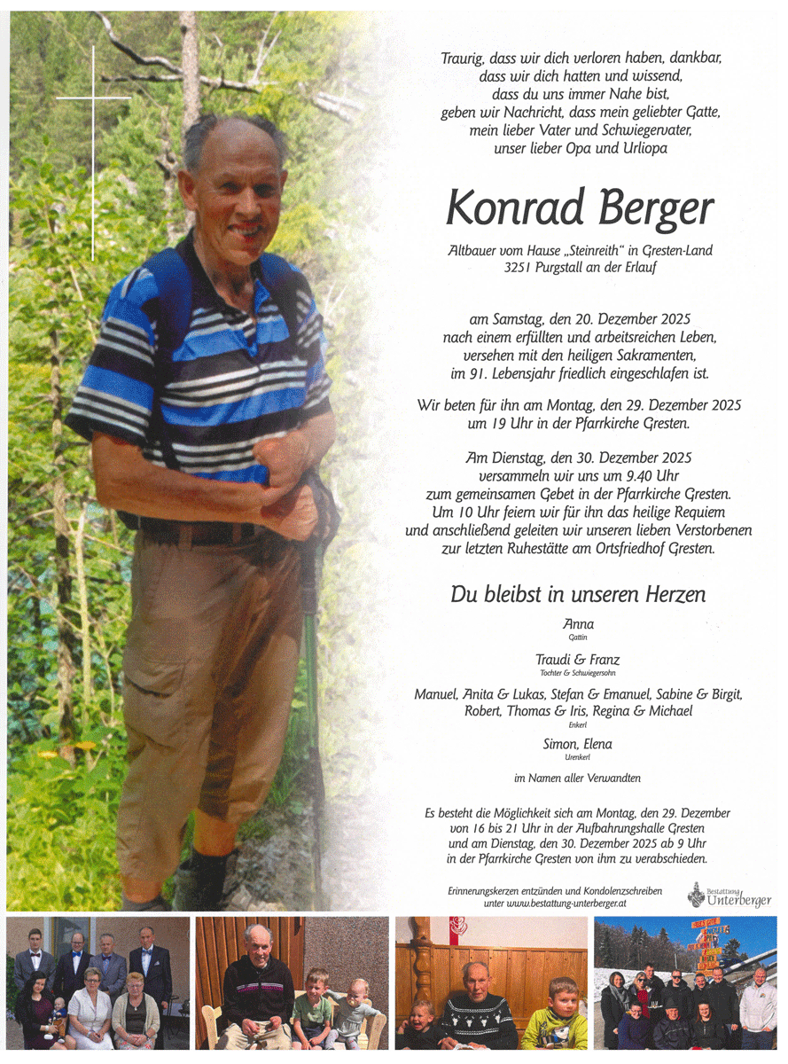 • Trauerfeier am 30. Dezember 2025 in Gresten