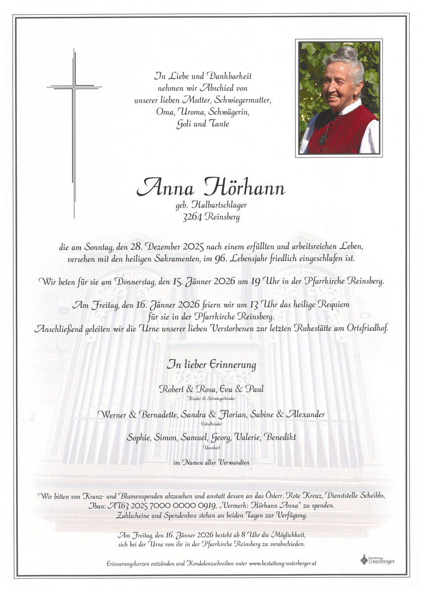 • Trauerfeier am 16. Jänner 2026 in Reinsberg