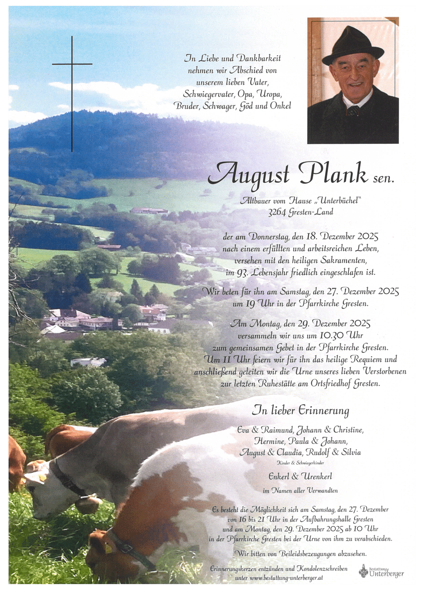 • Trauerfeier am 29. Dezember 2025 in Gresten