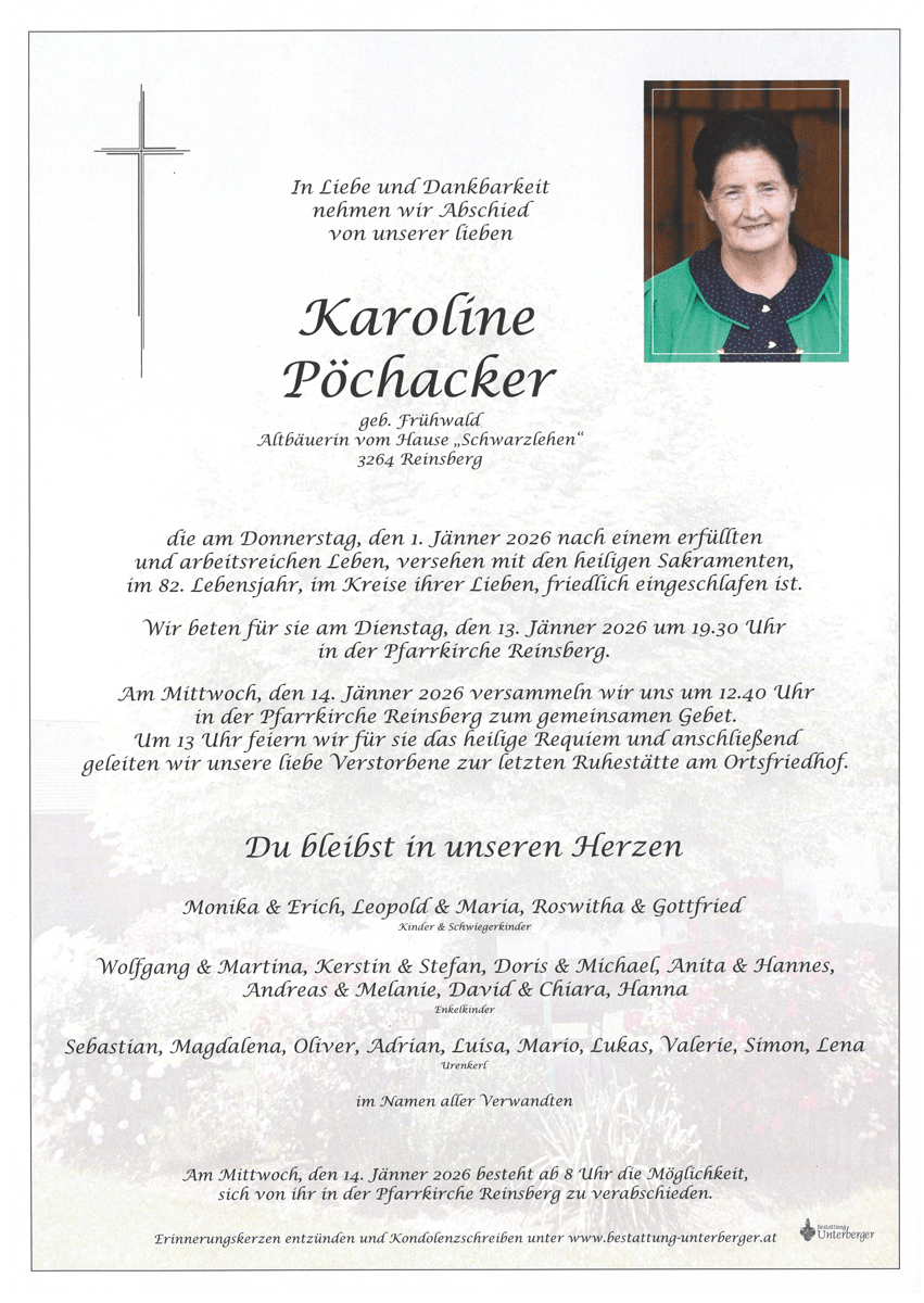 • Trauerfeier am 14. Jänner 2026 in Reinsberg