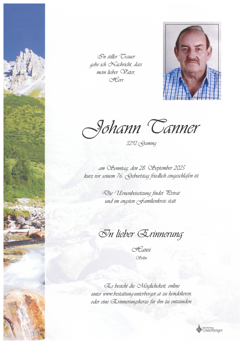 Aufrichtiges Beileid Johann Fallmann Transporte